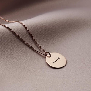 Custom Disc Name Necklace Round Gold - Silver - Rose Gold Colour Plated