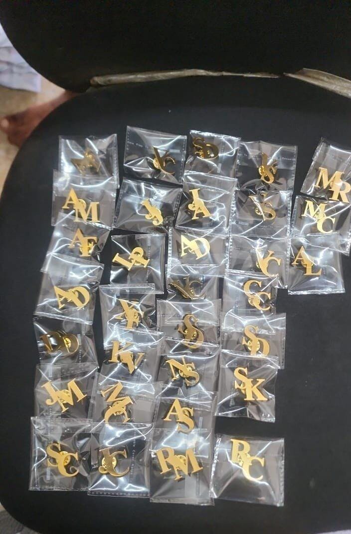 Elevate your style with our exquisite name brooch for men. This personalized initials lapel pin serves as a charming accessory that adds a touch of individuality to any outfit. Crafted with precision, each brooch showcases custom initials in a sophisticated design, making it an ideal choice for the modern gentleman.