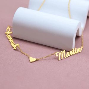 Custom Name Necklace Pendant Dual Style In Single Chain with heart