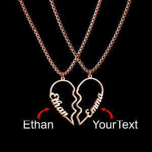 Dual Custom Couple Name Necklace Double Name Half heart - Order Now