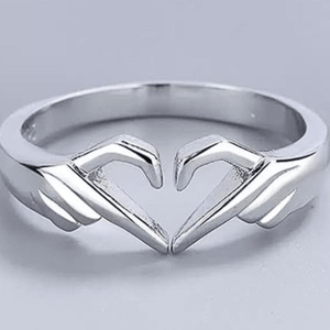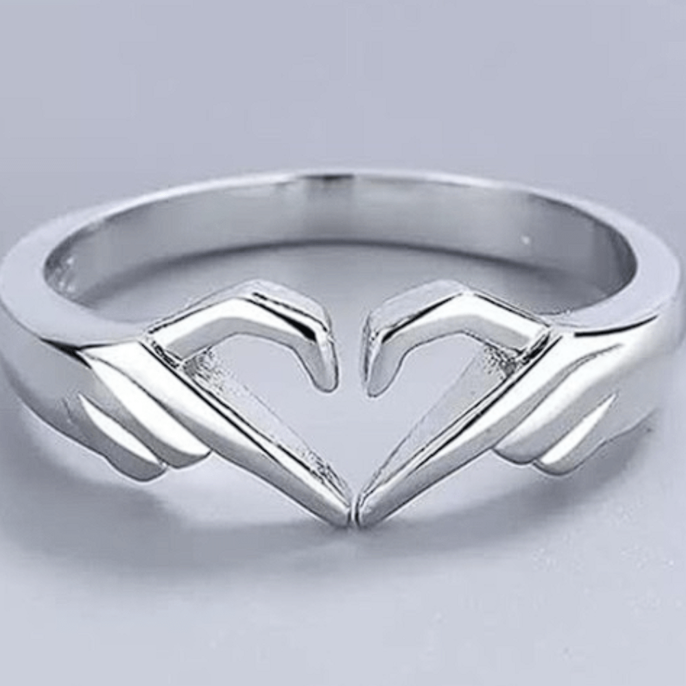 Home Silver Plated Hand Love Heart Sign Ring (Adjustable size)