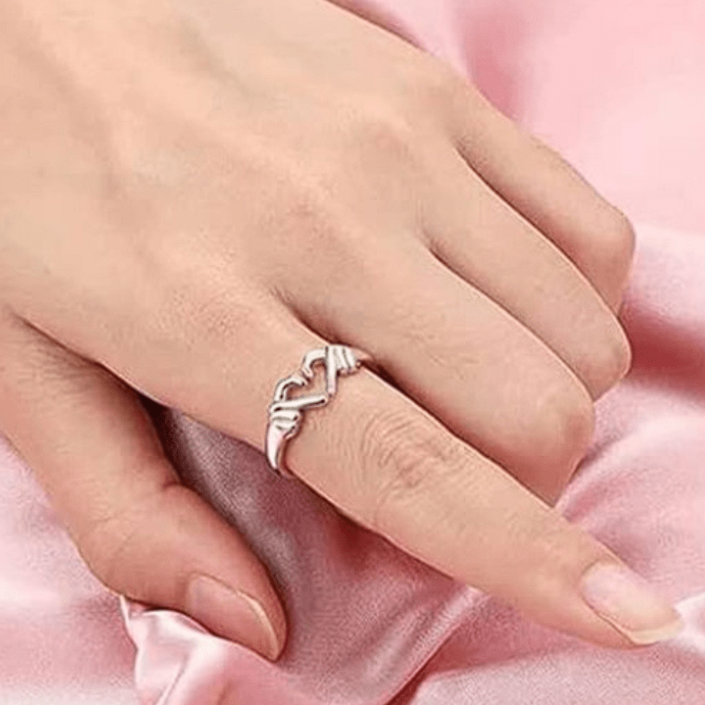 Silver Plated Hand Love Heart Sign Ring (Adjustable size)
